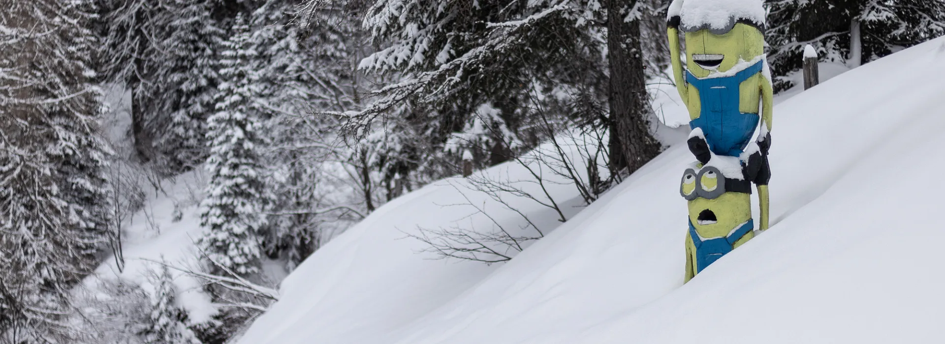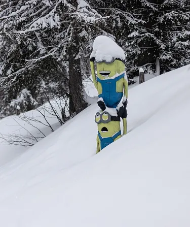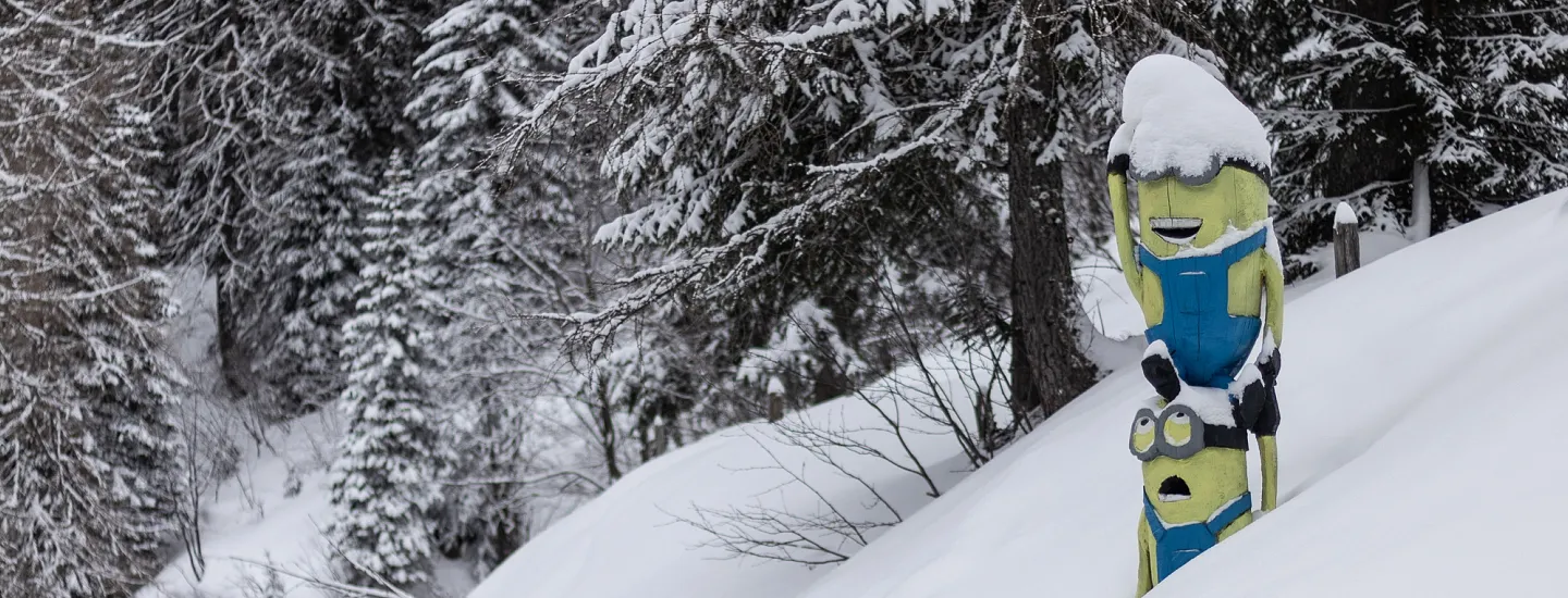Hollywald – das ist der Waldrand am Skiweg zur Finstergrube. Damit das Ski fahren für die Kinder spannend bleibt, schauen dort den Kinder viele Figuren aus berühmten Kinderfilmen zu.